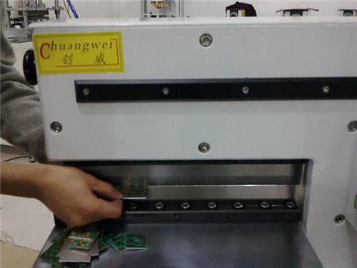 6、PC板推到鍘刀可切割范圍內(nèi)并踩下踏板,用手輕輕扶住PC板直到整個(gè)程序完成。