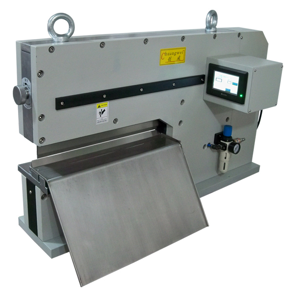 (3),鍘刀式LED鋁基板分板機,CWVC-450(此種型號鍘刀式LED鋁基板分板機,CWVC-450具有更強更堅固的機械結構,因此更適用于分切硬厚燈條鋁基板及各種帶V槽的金屬基板皆適用。比如路燈鋁基板,各種戶外及工業所有的大功率鋁基板皆可適用。)