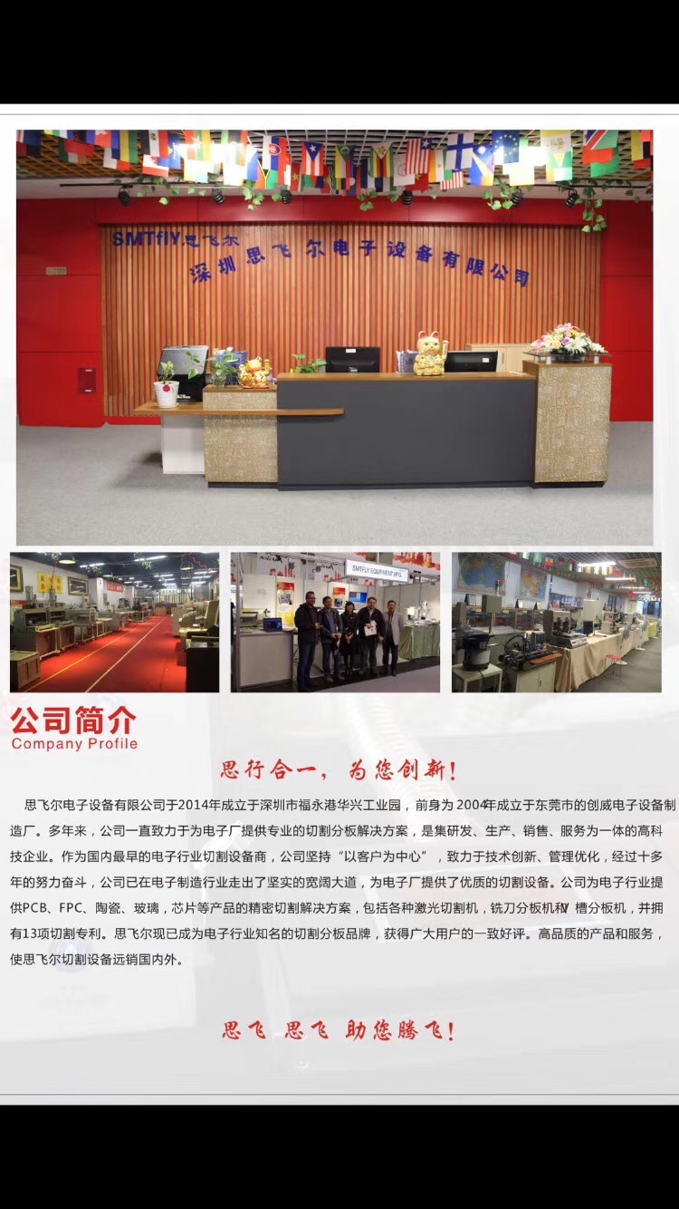 深圳思飛爾電子設備有限公司是一家專業致力于自動化設備開發、生產、銷售于一體的公司,具有多年開發、生產經驗和雄厚的技術力量及生產能力。擁有長期致力于自動化控制及編程的技術人員和銷售團隊,開發有各種自主品牌自動化設備項目。自主品牌設備有激光切割機,FPC激光分板機,PCB激光切割機,陶瓷激光切割機,等設備。功能齊全,性價比高,幫助電子廠又好又快制造產品歡迎垂詢、洽談。